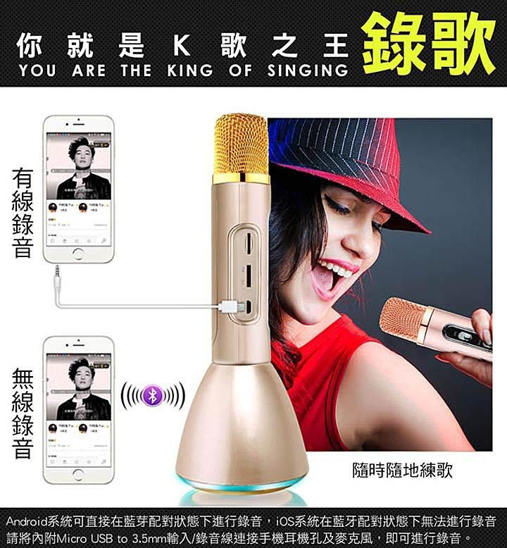 商品名稱:K歌之王 LED炫彩智能藍牙行動KTV麥克風喇叭(支援TF記憶卡)