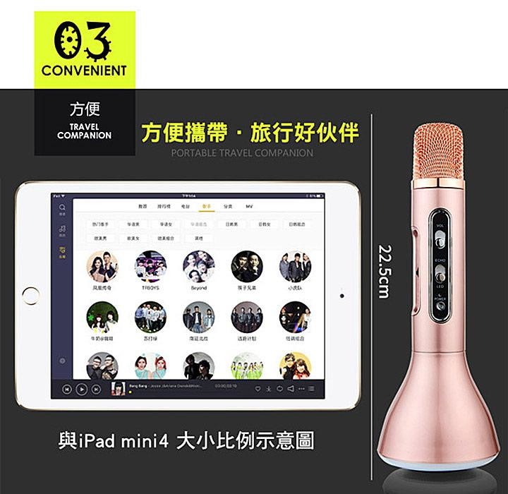 全新K歌體驗『LED炫彩智能藍牙行動KTV麥克風喇叭』採用藍牙配對,無線連接,沒有線材連接的煩惱,盡情高歌不受“線”制!